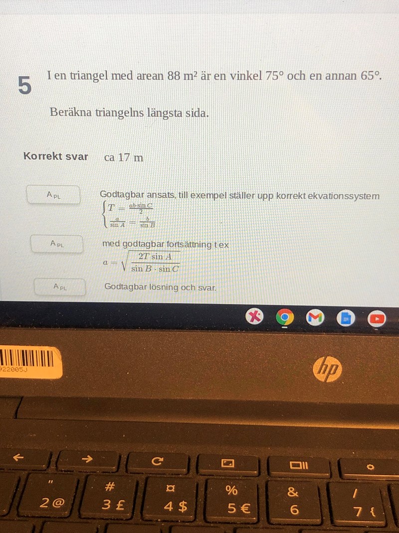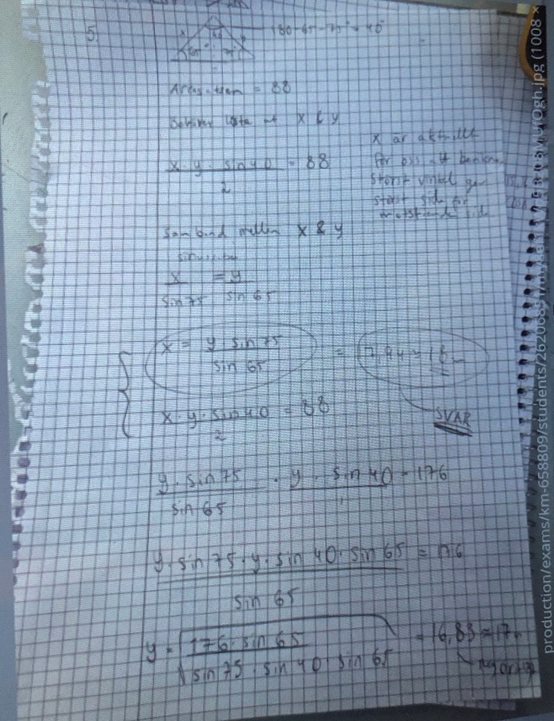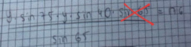Du har en faktor sin(65°) för mycket i täljaren, men annars ser det rätt ut.