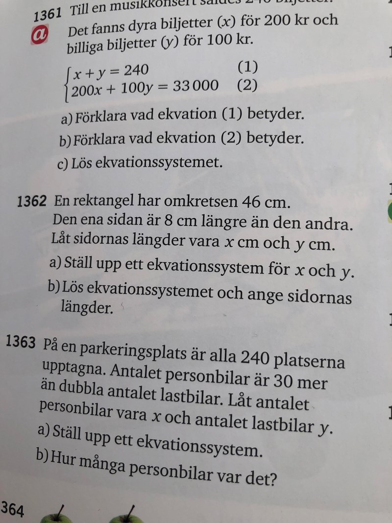 Jag vet inte hur jag ska skriva ett ekvationssystem för uppgift 1362. Hur ska jag tolka texten?