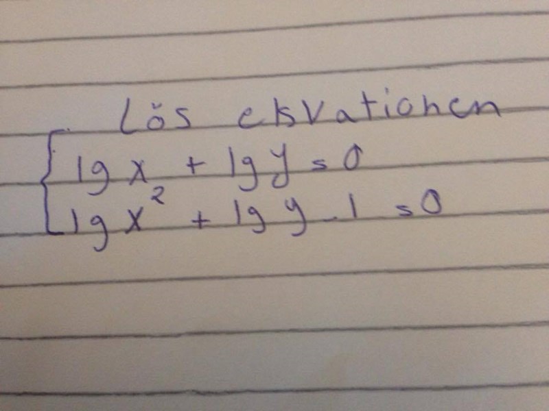 (lg x upphöj till 2 ) + lg y -1 = 0