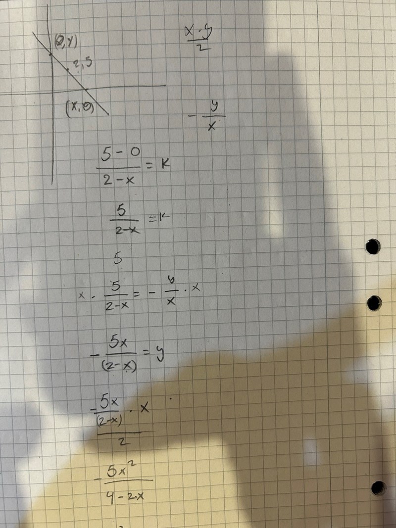 Men du har A(k) så uttrycket för bh/2 ska ges med k som variabel, inte x väl? Så man får fram det k-värde som ger minst area. Eller?