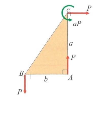 PATENTERAMERA skrev:Kraftsumman är vektorsumman av alla krafter i ett system av krafter. Krafterna i B och A tar ut varandra så kraftsumman är helt enkelt lika med kraften i C (P).