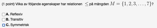 Kan nån skriva svaret och ge en förklaring varför M är reflexiv, transitiv eller symmetrisk?