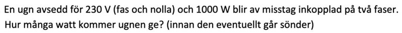 Smaragdalena skrev:Varifrån kommer siffran 400 på andra raden? Varför använder du dig inte av enheter utan bara nakna siffror? Eftersom du har lagt tråden på universitetsnivå borde du föra ett resonemang om att det är (bra nära) rent resistiv belastning i en spis, inte så mycket spolar och kondensatorer.