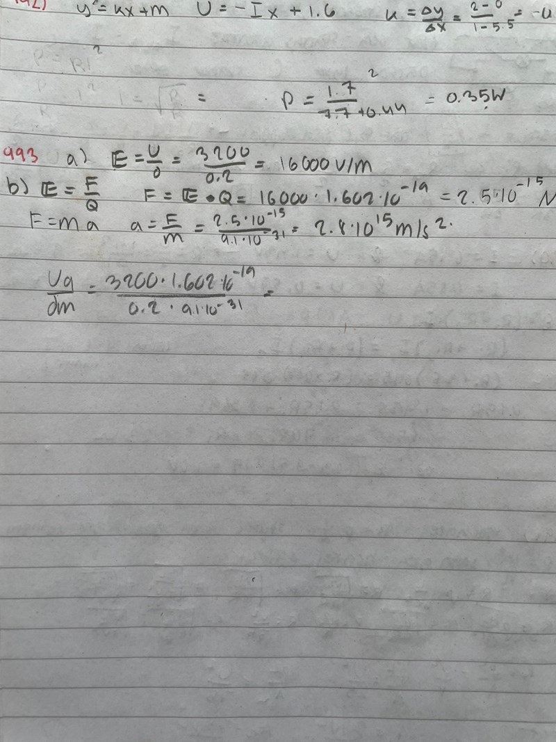 jag använde mitt svar i A och multiplicerade med q för att få F. Sedan använde jag F=ma och får ut a. Dock fick jag ju ganska fel. Här är mina uträkningar.