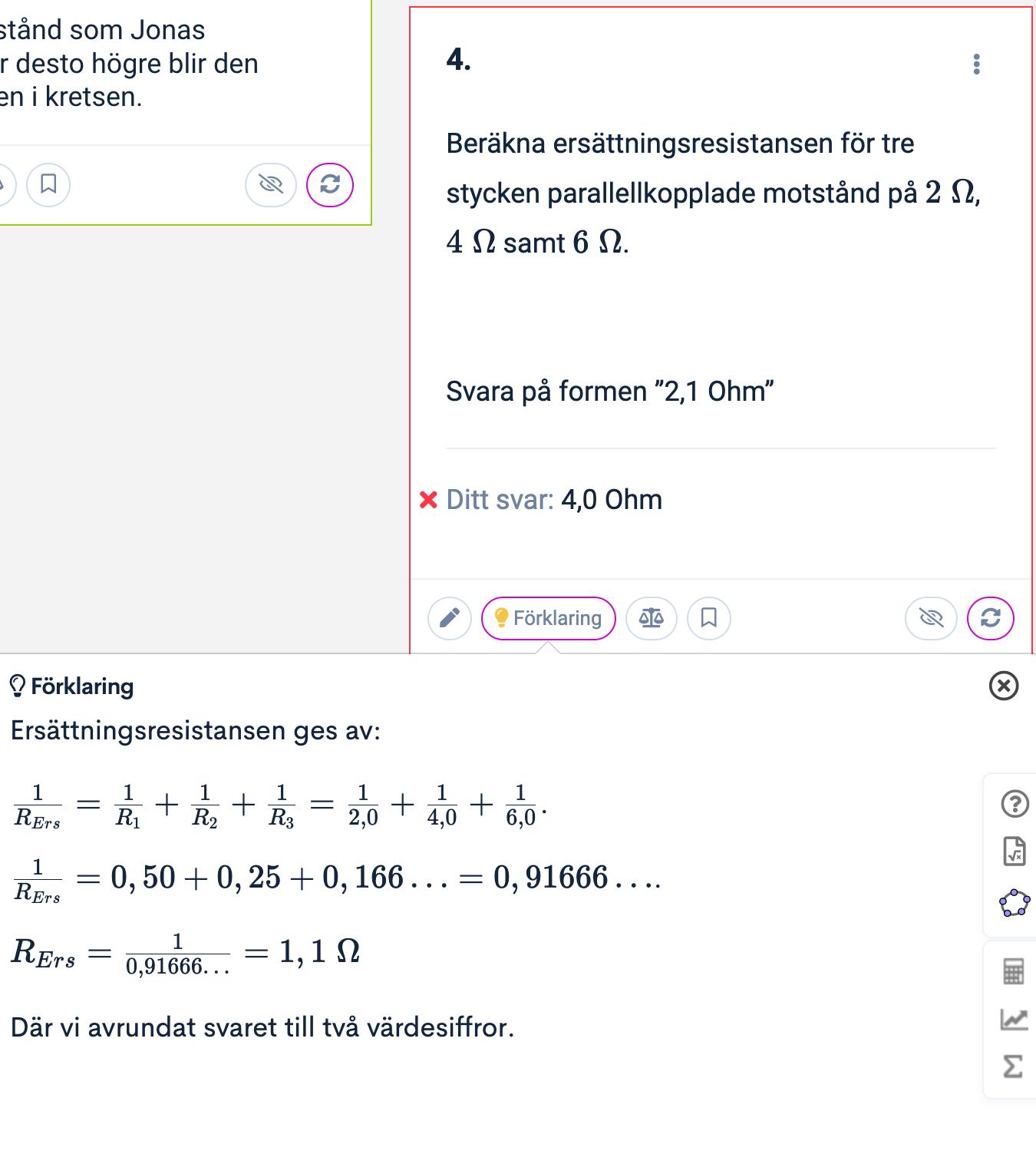 Man ska alltid kolla att svaret är lägre än vart och ett av de två ingående resistanserna.