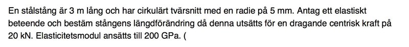 Är en ganska rak tillämpning av att en stavs förlängning är proportionell mot den dragande kraften men vad har du använt för formler eller metoder när du löst liknande problem tidigare?