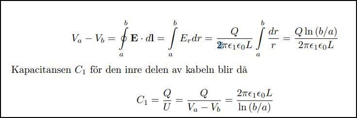 Elektricitet: Kapacitans mellan cylinderformade plattor