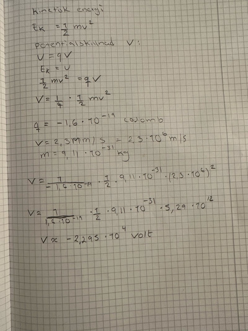 Det är kanske en relativistisk hastighet, så att Emv2 inte gäller? Men avvikelsen kan inte vara stor. Detta är ju mindre än en procent av ljusets hastighet, ungefär c/137, alltså nära elektronens kinetiska energi i väteatomen, 13,6 eV.