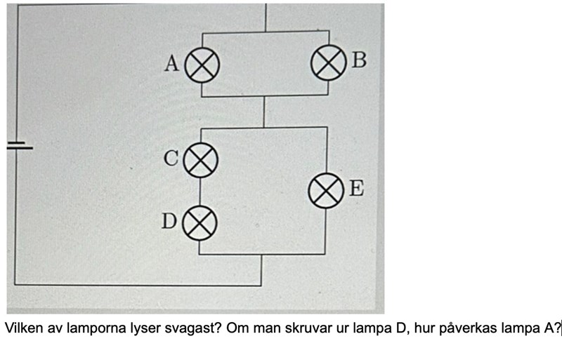 Varit inne på det ett antal gånger att det bör vara just C och D, men får fel på det. Angående vad som händer med lampa A är väll att den borde lysa starkare om man skruvar ur D?