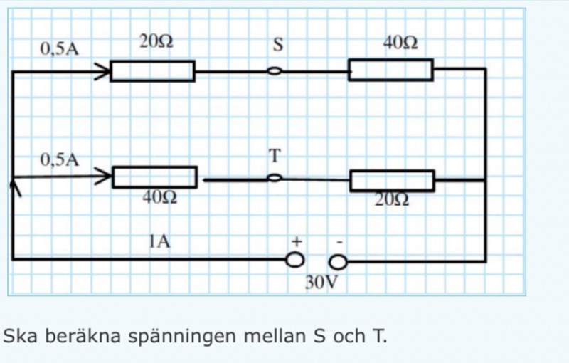 Okej detta hänger jag med på men hur räknar man spänningen mellan S och T?