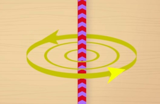 Om bilden visar en ledare där strömmens riktning är uppåt så färdas alltså elektronerna nedåt.