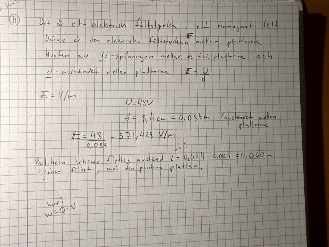Sedan multiplicerar du detta med den färdade sträckan 0,060 m och borde ju då enligt