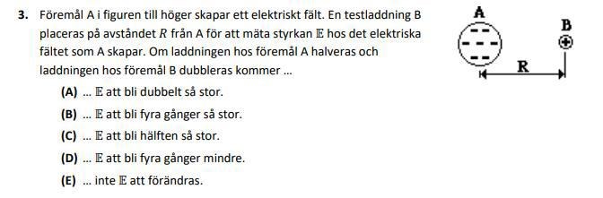 Även här förstår jag inte varför svaret blir C), Vilken ekvation använder man sig utav för att kunna jämföra storheterna när man halverar A laddningen och dubblerar B laddningen?