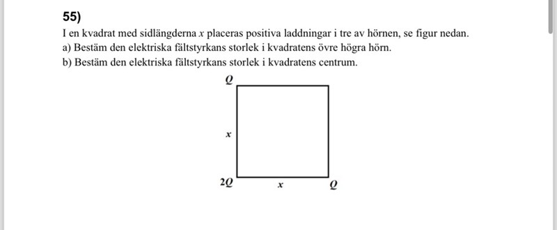 Även här Coulombs lag. Vilken blir den resulterande riktningen?