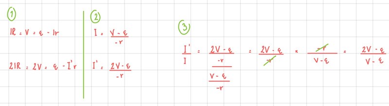 enligt mina manipulationer nedan förstår jag varför V skulle ändras och vara större (men som sagt, det går inte ihop då med konceptet ovan). Det enda jag kommer fram till att 2V-e är större än V-e och då måste I’ vara större.
