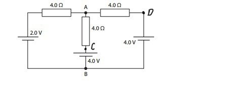 Cellerna tar inte ut varandra. Eftersom C och D har samma potential kan man koppla ihop dem utan att det går någon ström från C till D eller omvänt. Två av 4 Ω motstånden blir då parallella liksom de båda 4 V spänningskällorna.
