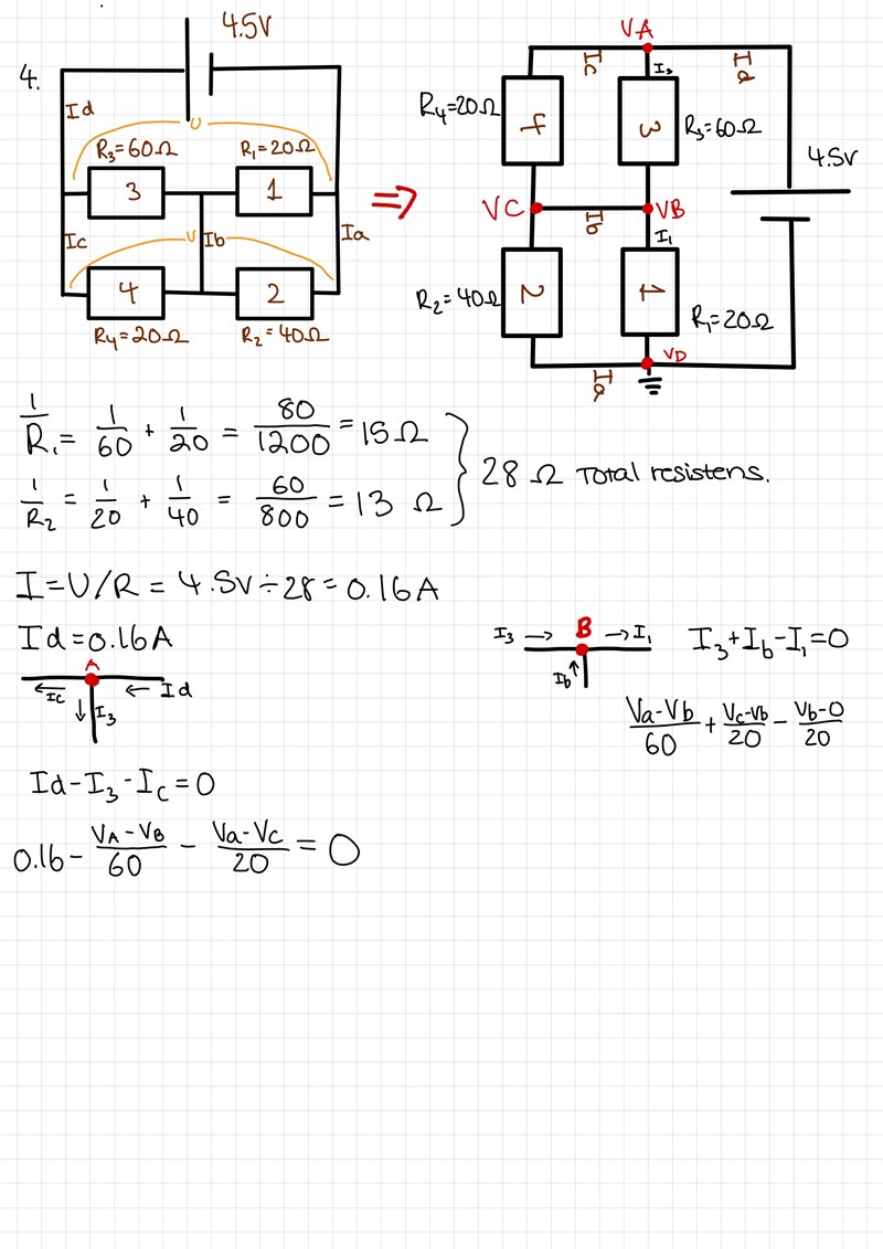 Ib=I4-I2 vilket ska ge mig samma svar som I1-I3. Båda dessa gav mig 0.013A!