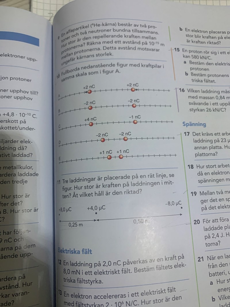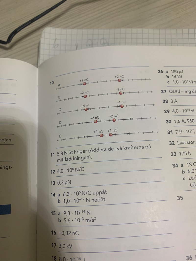 Jag behöver lite hjälp med denna uppgiften. Jag fattar inte riktigt hur stora kraftpilarna ska vara och hur jag ska ta reda på det. Det jag vet är att B, D och E repellerar varandra men mer än det vet jag inte. Jag fattar inte hur dom gjorde i facit