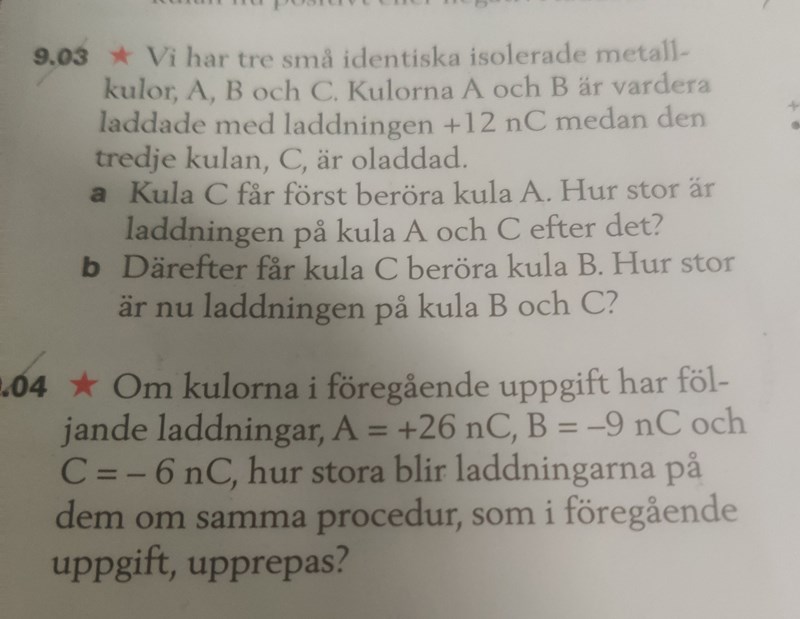 9.04 b) Hur ska jag göra? På de andra uppgifterna har jag bara adderat dem för att sedan ta medelvärdet. tex 26 +(-6) /2 Det blir 10 nC