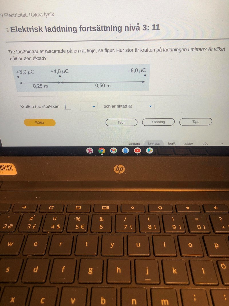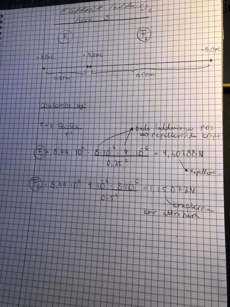 Om den vänstra och den mittersta laddningen repellerar varandra, åt vilket håll verkar då kraften på den mittersta?