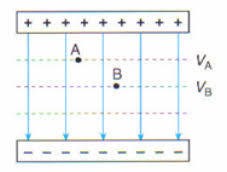 Om man flyttar sig längs ett elektriskt fält så går man från en punkt med högre potential till en med lägre.