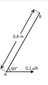 Vid förflyttning i ett elektriskt fält från punkten A till punkten B påverkas laddningen Q=+ 4 pC hela tiden av fältet med den elektriska kraften F = 0,2 µN, som är konstant till storlek och riktning.