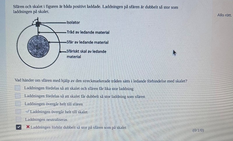 karam123 skrev:Hej varför är mitt svar fel, har inte skalet dubbelt så stor mantelyta och därmed bör den väl ha mer laddningar
