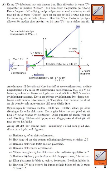 Sitter med denna uppgiften just nu. Jag har löst a = 1,3M/s, b = 7,5ns, c = 10 000Vm, d = 1,756*10^15m/s. Men jag får inte löst e).