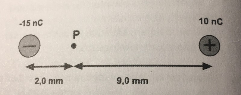 Bestäm det elektriska fältets storlek och riktning i punkten P.