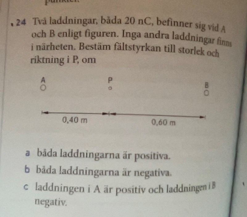 I facit står det att svaret är 0,62kN/C i riktning mot B