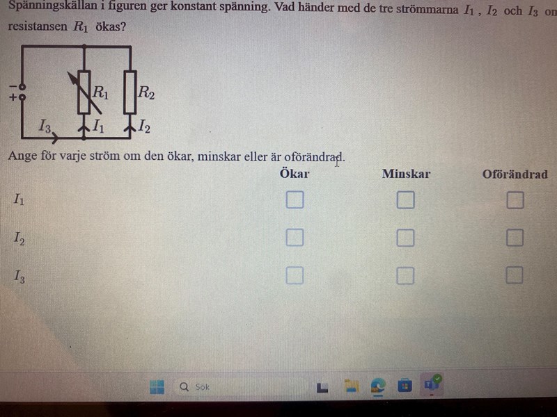 Man skall tänka på Ohms lag, U = R•I, då U är konstant och R kan varieras.