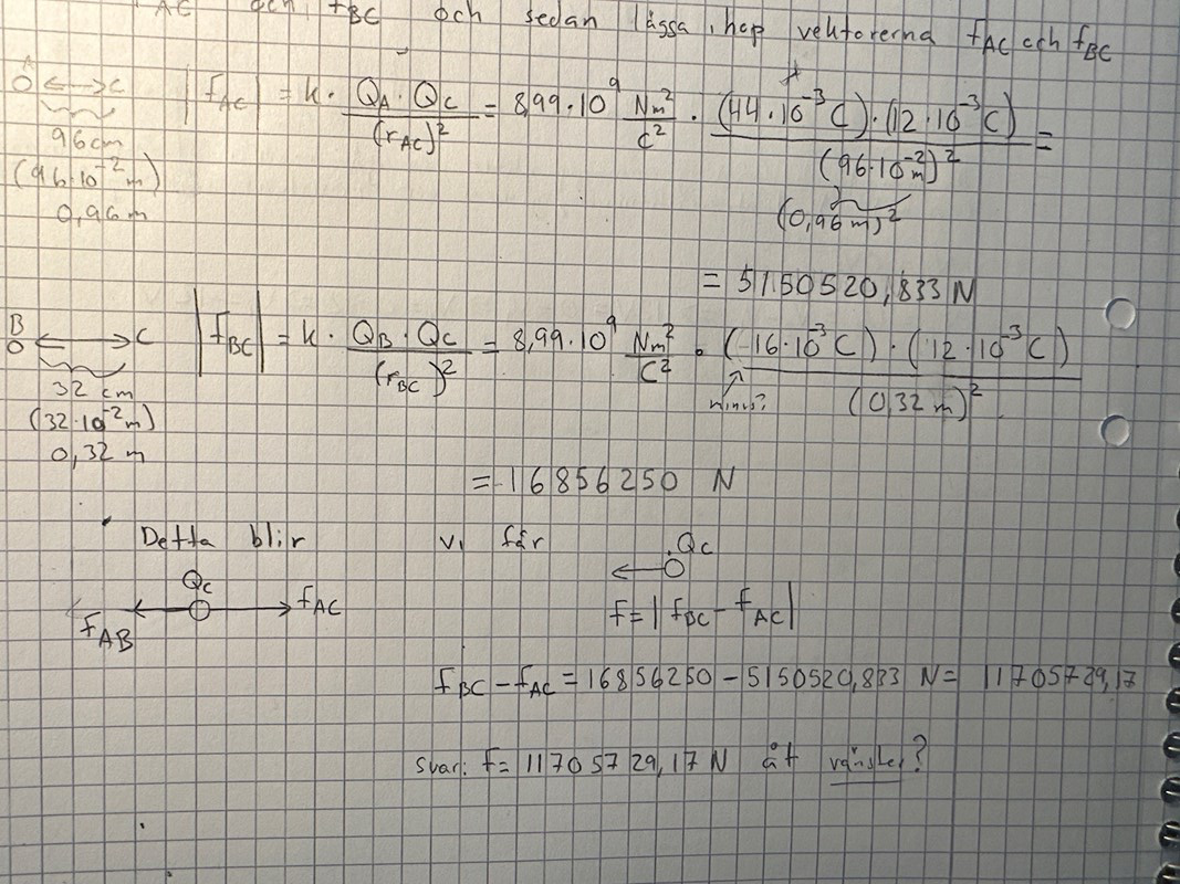 jag är lite kluven hur jag ska använda Columbs lag då det finns tre kulor.