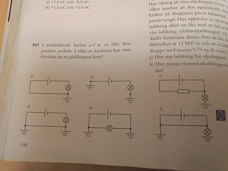 Och varför anses e) vara kortslutet, men inte d)??? Det är ju i princip precis samma krets, varför spelar det någon så stor roll att lampan sitter lite i mitten eller på sidan?