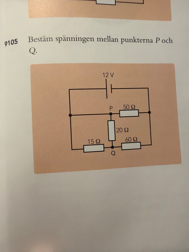 Över PQ blir det 1,5 V (med reservation för felräkning)