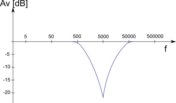 Om man låter frekvensen svepa får man en karakteristik som ser ut ungefär så här:
