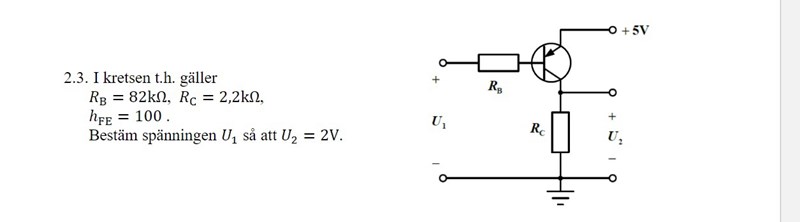 KVL (emitter-bas-Rb-jord) ger +5 -0,7-Rb*Ib -U1 = 0