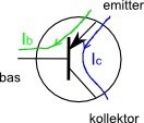 vilket ger strömmen genom Rb som Ic/hfe = 0,9/100 = 9uA