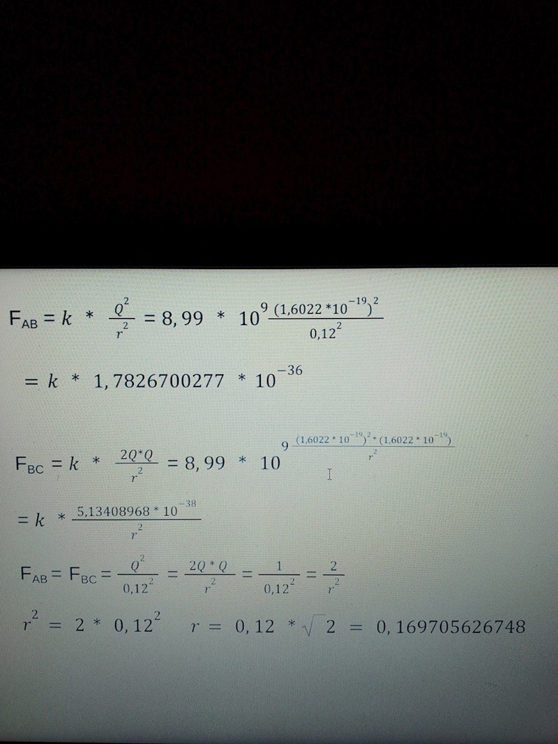 Stämmer det att kraften mellan AB är F = 8,99 x 10^9 ( 1,6022 x 10^-19)^2? ~ 2,307773311 x 10^-18