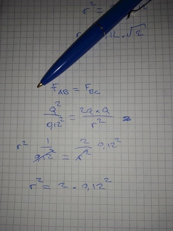 Ja, det är detta avstånd du skall räkna ut. För att kraften mellan B och C skall vara lika stor som kraften mellan A och B fastän man har multiplicerat täljaren med 2 så måste avståndet (kvadrerat och i nämnaren) vara ...