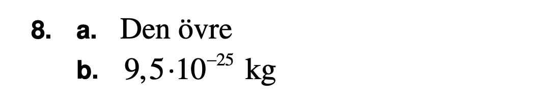 m=qrB2d/U detta ger dock fel svar vilket jag får till 6*10-17 kg , rätt svar är. 9*10-25 har jag för mig