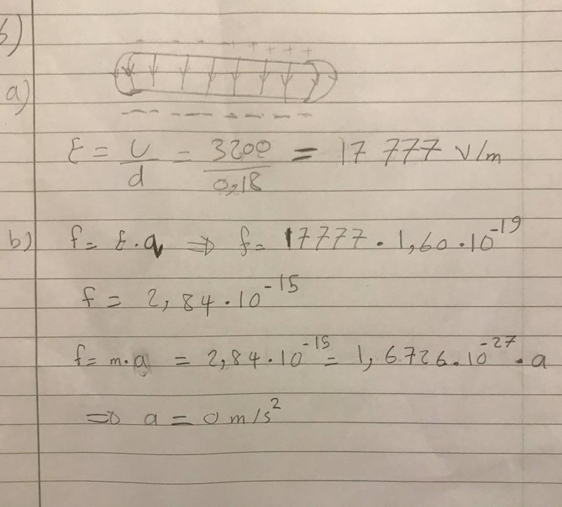 b) a = F/m = (E*q ) / m = (U *q) / (d*m)