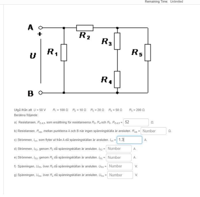 Tack så mycket båda, förstår nu a,c,d,e men fortfarande lite osäker på b,f,g. På b vad är Ra och Rb i formeln du använder och vart kommer den formeln ifrån? Sedan på f och g vad är Rers och i vårt fall är R1=R1 i bilden och R2 = R2345??