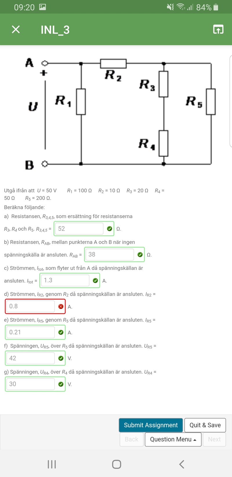 Lyckas få 71 % rätt på uppgiften men förstår ej vad som blir fel nedan e mina beräkningar
