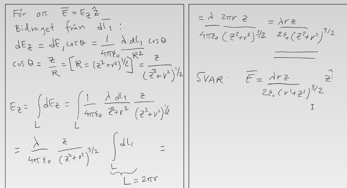 Elektrodynamik: E-fält från laddad ring