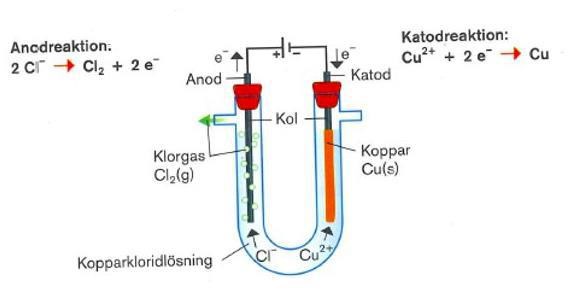 Det är precis som en galvanisk cell, fast tvärt om. I en galvanisk cell sker en spontan reaktion som frigör energi i form av elektrisk energi som plockas ut från cellen. Vid elektrolys tillför man elektrisk energi för att påtvinga en reaktion som annars inte hade skett spontant. I ditt exempel tvingar man kopparklorid att bilda koppar och klorgas, vilket inte skulle kunna ske utan tillförsel av energi. Normalt sett reagerar koppar med klorgas under frigörande av energi.