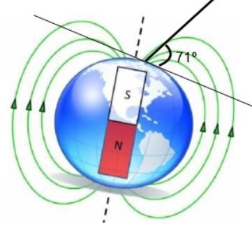 Inklinationen anger vinkeln mellan magnetiska vektorn och den lokala horisonten och är då noll över ekvatorn.