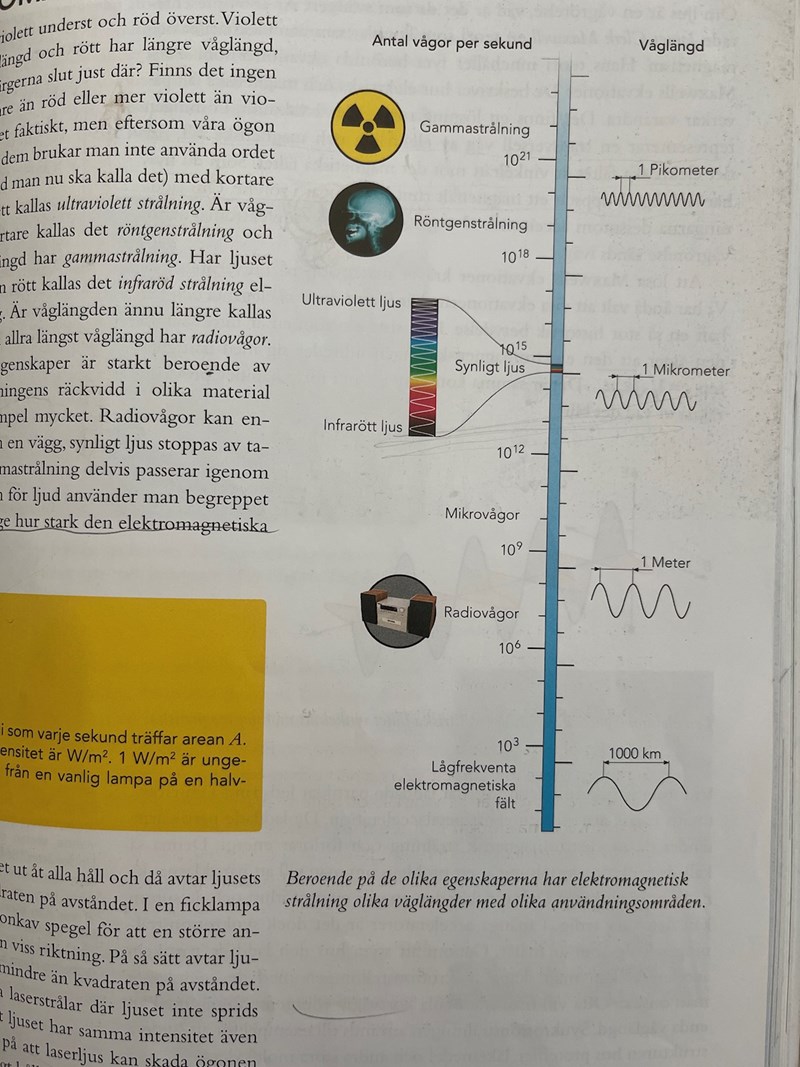 Jaha okej. Nu förstår jag. Men jag förstår inte hur bilden i boken visar att 1 mikro meter är infrarött ljus.. Varför ska det inte vara ultra violett?