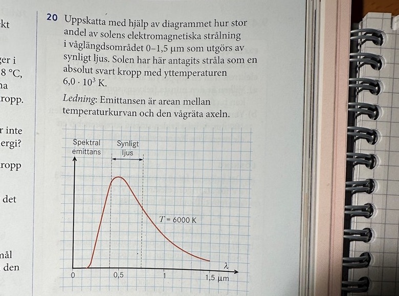 0,75-0,4= 0,35 mikrometer av våglängdsområdet utgörs av synlig ljus
