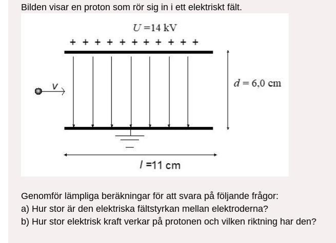 Edit. Jag tror du använde protonens massa, inte dess laddning i b. Men tiopotenserna är också fel