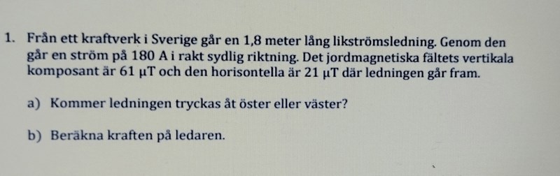 F=BII = 21*10-6 * 180 * 1.8 = 6.8*10-4 stämmer min lösning ?